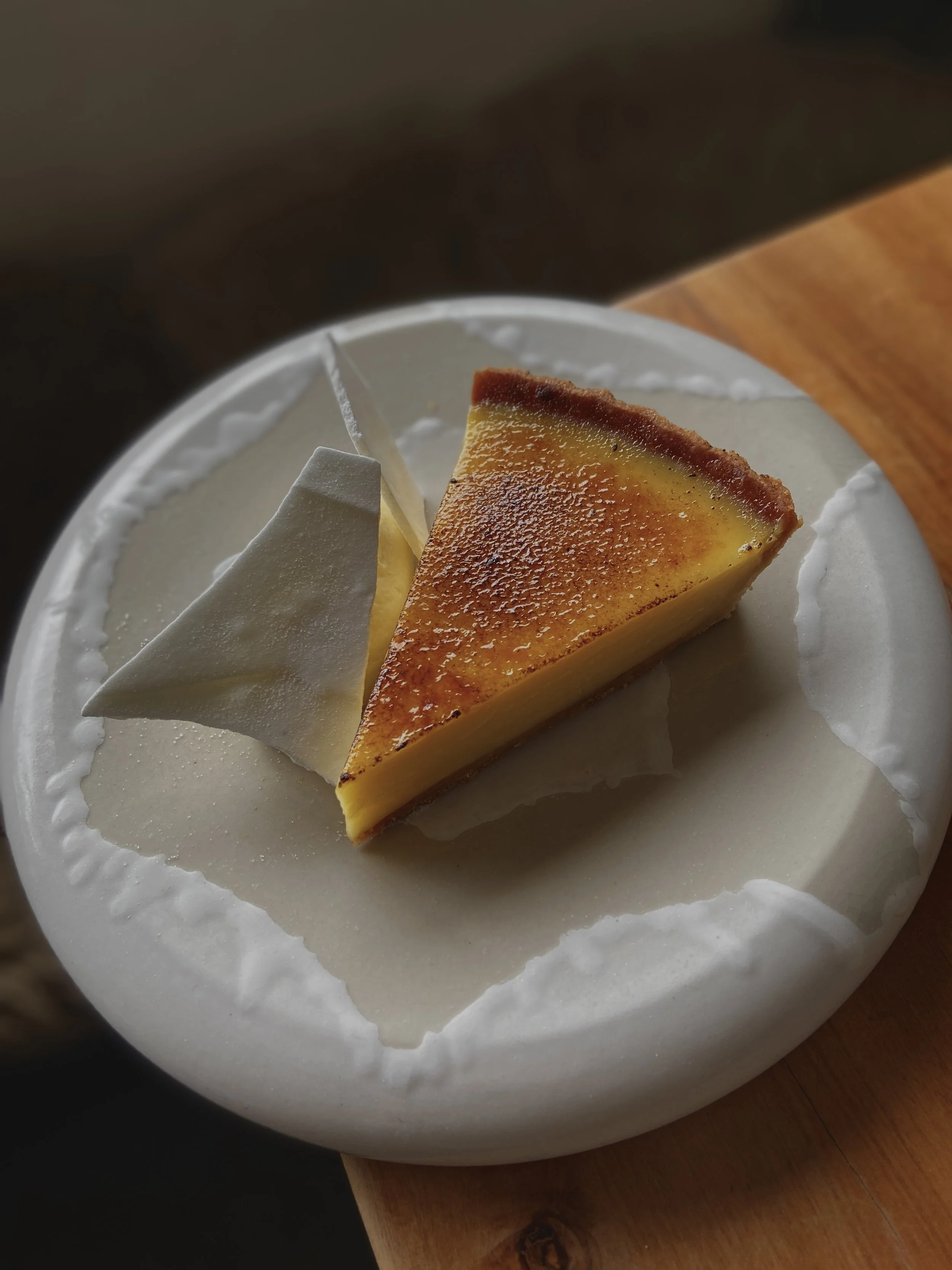 This light but mighty dish is on the menu simply because it feels perfect for spring. A generous portion of sweet, tangy lemon curd, delicate slices of meringue, and a light shortcrust pastry holding it all together. We’d eat it all day if we could.
